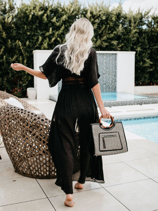 Beach blouse hollow waist lace anti-sunshine cardigan holiday dress women's skirt
