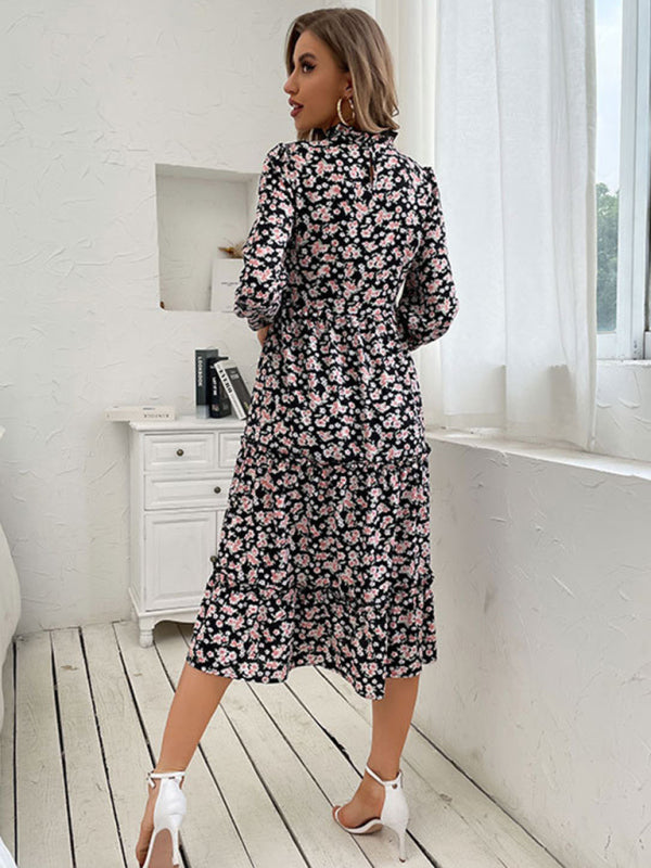mid-length turtleneck pleated print dress