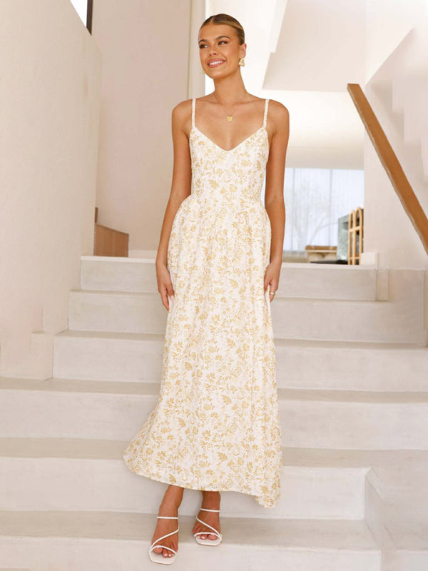 New V-neck waist holiday long dress sexy backless bow tie dress