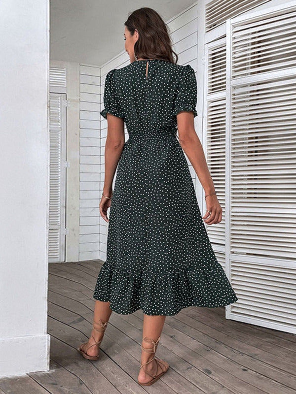 New women's casual holiday polka dot v-neck mid-length dress