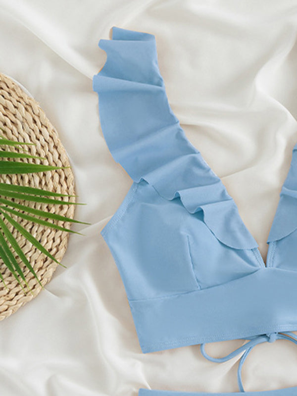 New women's lace V-neck ruffled high-waist split swimsuit bikini - 10 colours available