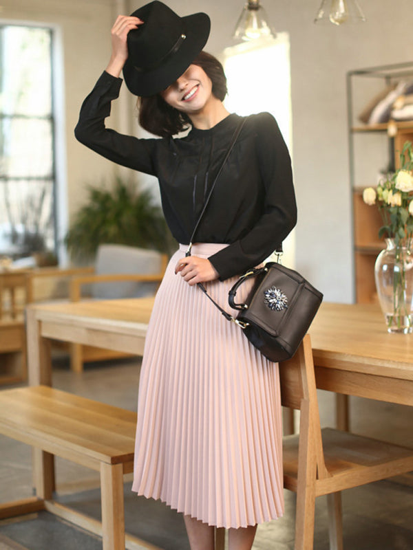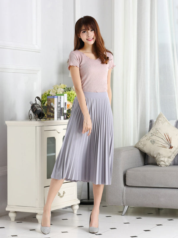 Pleated Mid Length Skirts Elasticated Waistline - 2 colours available