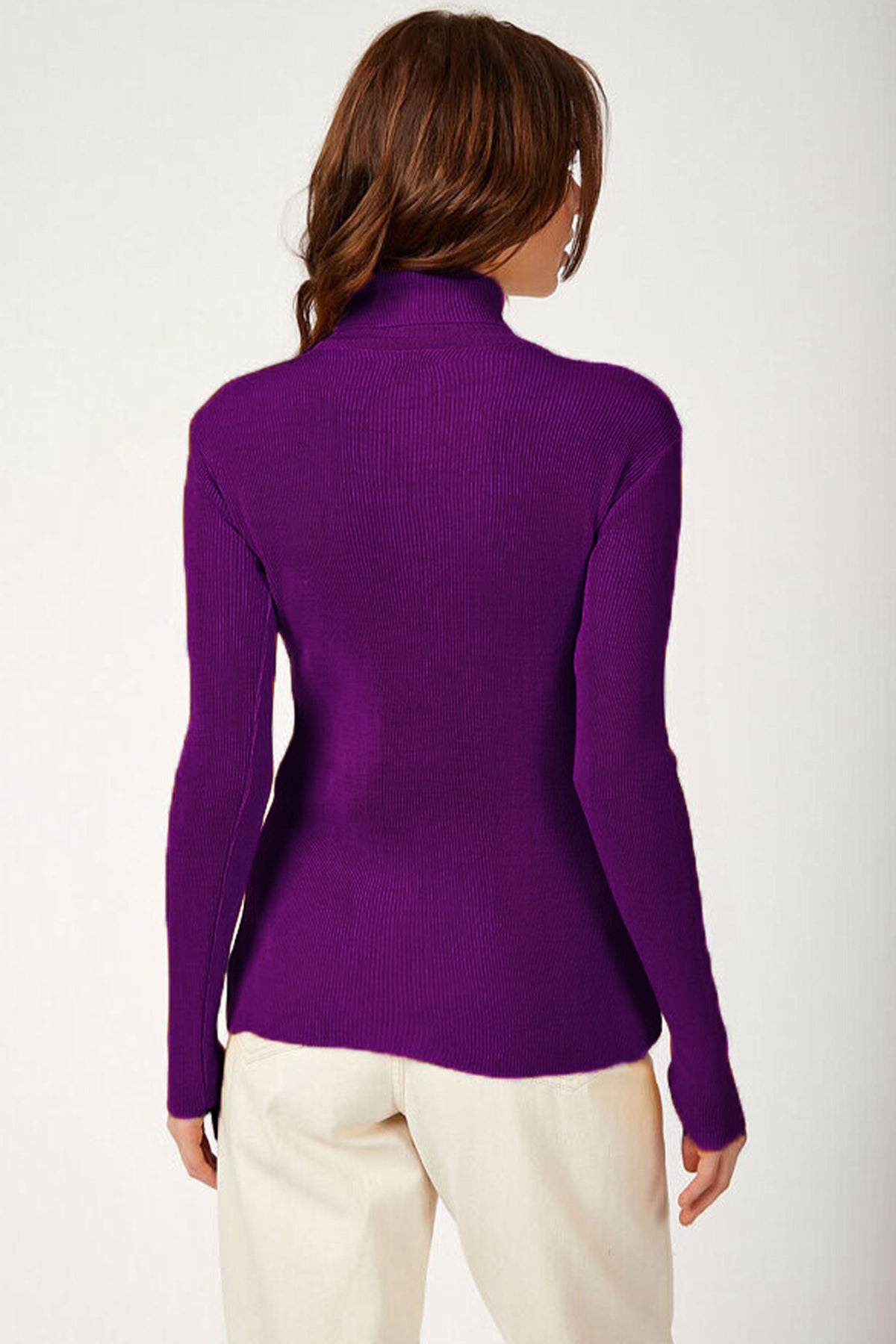 Purple Ribbed Long Sleeve Polo Neck Jumper